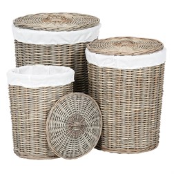 AkceKoš proutěný - prádelní, s víkem, šedý, cena za sadu 3 ks