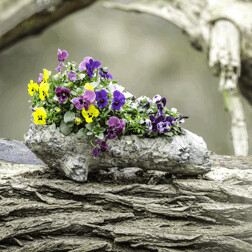 Obal betonový - truhlík, dřevo s houbami, vel. S, hnědý