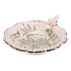 NovinkaKrmítko/pítko - keramické, pravidelný květ s ptáčky, zelené