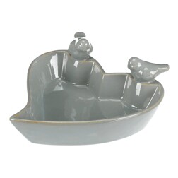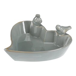 NovinkaKrmítko/pítko - keramické, květ s ptáčky, stojaté, tm. mentolové