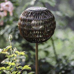 NovinkaLucerna na zápichu - umělý ratan, kulatá, LED osvětl., tmavě hnědá
