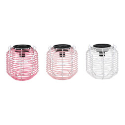 NovinkaLucerna - umělý ratan a kov, soudek, LED osvětl., mix 3 barev, cena za 1 ks