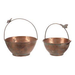 NovinkaObal kovový - závěsný, s ptáčky, měděná, cena za sadu 2 ks