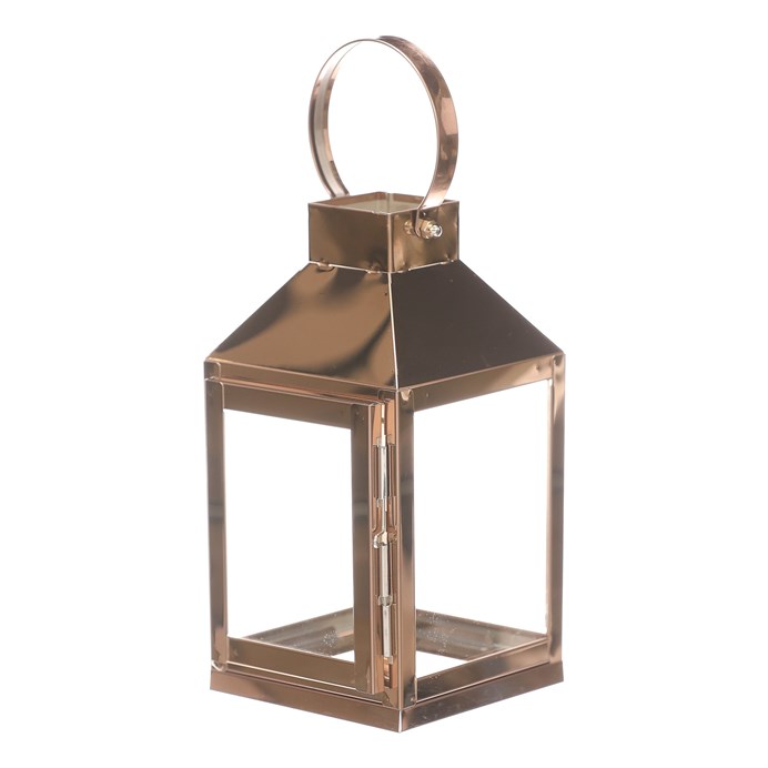 Lucerna kovová - čtyřboká, malá, barva měděná