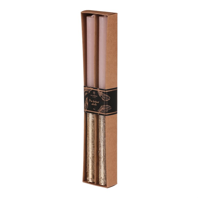 Svíčka kónická - parafín, růžová/zlatá, cena za krabičku (2 ks)