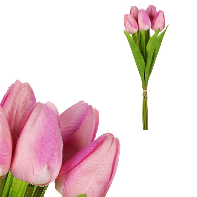Tato umělá kytice z fialových tulipánů je jako malý zázrak, který vám přináší natrvalo všechnu radost a krásu jara. Je pečlivě vytvořena tak, aby napodobovala všechny detaily živé rostliny. Výhodou je, že nikdy neuvadne, neopadá a neztratí na svém půvabu. Můžete si užívat té nádhery tak dlouho, jak jen budete chtít. Nechte ji vyniknout samostatně, nebo začleňte do smyslného mixu s dalšími rostlinami a vytvořte ohromující kompozici, která okouzlí každého. Osvěžte svůj interiér, přidejte mu nádech jara, explozi barev a touhu po životě s touto umělou květinovou ozdobou.