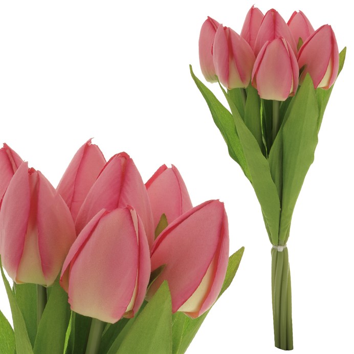 Tulipán - umělá kytice, 7 květů, barva růžová
