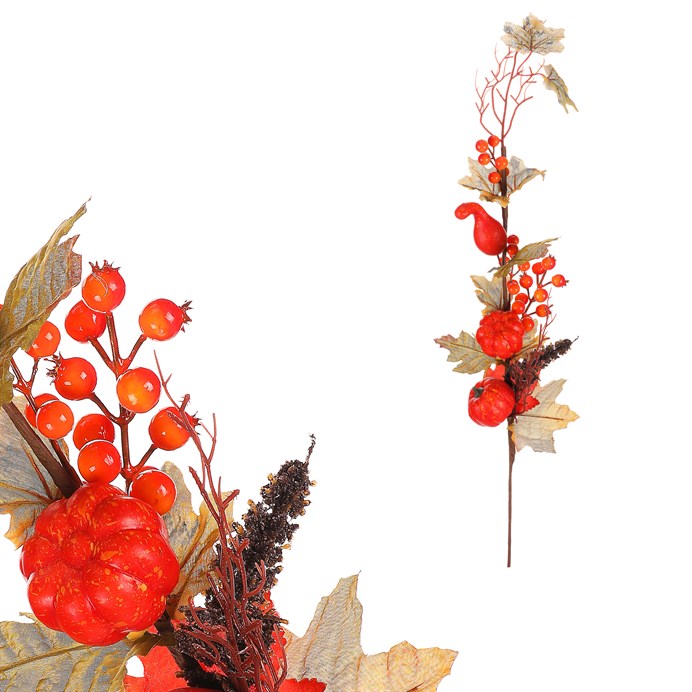 Listí, dýně a bobule - umělá větev, barva oranžová