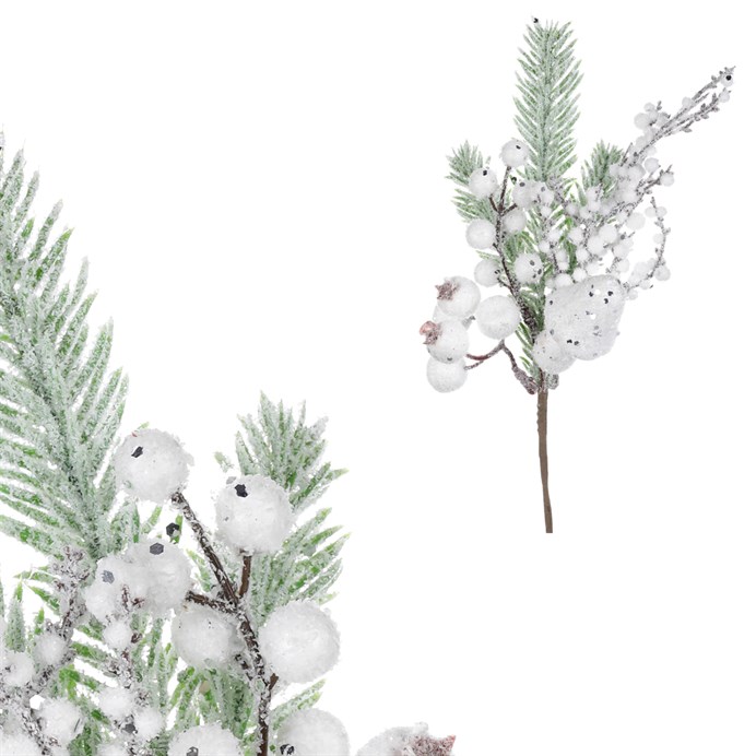 Smrk s bílými bobulemi - umělá větev, zasněžená