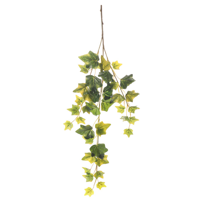 Umělá větev břečťanu s textilními listy v různých odstínech zelené přináší do interiéru přírodní atmosféru bez nutnosti péče. Detailní zpracování listů věrně napodobuje strukturu a tvar skutečné rostliny, což zajišťuje autentický vzhled. Větev je vhodná pro aranžmá v květináčích, závěsných dekoracích nebo jako doplněk k dalším rostlinám. Díky použitým materiálům se snadno udržuje a dlouhodobě si zachovává svůj vzhled.