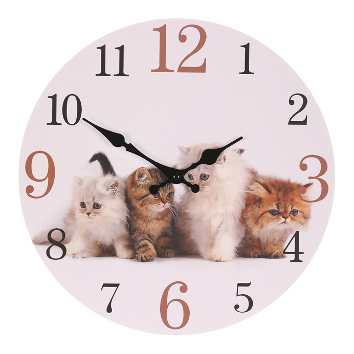 Hodiny nástěnné - pr. 34 cm, MDF, motiv koťat