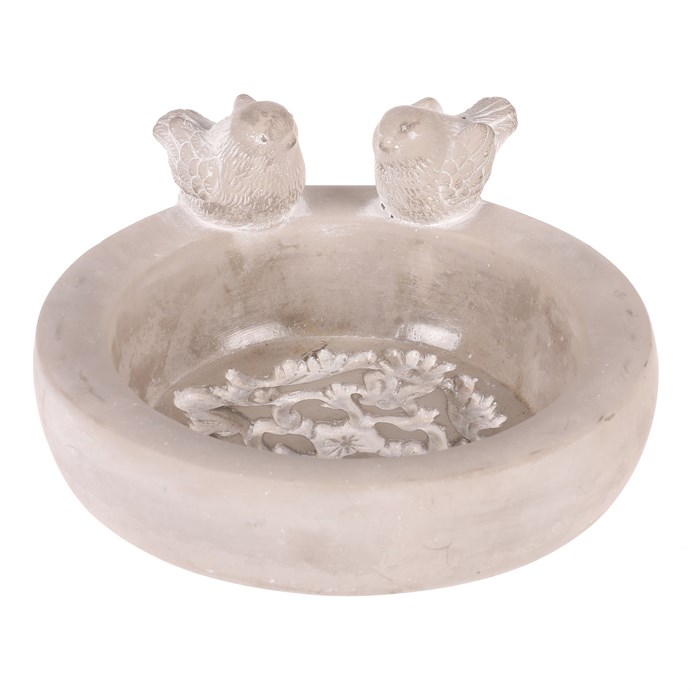 Krmítko/pítko - betonové, kruhové, s ptáčky, šedé
