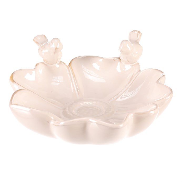 Krmítko/pítko - keramické, květ s ptáčky, krémové