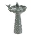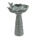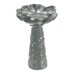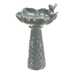Keramické krmítko a pítko v tmavě mentolovém odstínu zaujme tvarem květu s dvěma detailně zpracovanými ptáčky na okraji. Vysoká stojatá forma je zdobená reliéfními motivy listů, které dodávají dekorativní charakter. Povrch s jemným leskem snadno udržuje čistotu a materiál je navržen pro dlouhou životnost. Vhodné jako zdroj vody nebo místo pro krmení ptactva v zahradě či na terase.