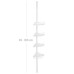 Nastavitelná rohová police do koupelny v bílém provedení nabízí čtyři praktické police pro uspořádání drobných předmětů a hygienických potřeb. Výšku lze flexibilně nastavit v rozmezí 85 až 305 cm, což umožňuje přizpůsobení různým prostorovým podmínkám. Police jsou vyrobeny z odolného plastu, který se snadno udržuje a je vhodný do vlhkého prostředí koupelny. Součástí jsou i malé háčky na spodní polici pro zavěšení doplňků. Díky jednoduchému a čistému designu se hodí do moderních i klasických koupelen.