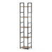 Regál s pěti policemi nabízí praktický odkládací prostor vhodný pro knihy, dekorace i další drobnosti. Police jsou vyrobeny z MDF desek s dubovým dekorem, které doplňuje pevná kovová konstrukce v černém laku, jež zajišťuje stabilitu a dlouhou životnost. Otevřená konstrukce umožňuje snadný přístup ke všem položkám a zároveň působí vzdušně v interiéru. Díky kombinaci přírodních odstínů dubu a černé barvy kovu se regál hodí do moderních i industriálních prostor. Výška a rozměry polic jsou navrženy tak, aby pojaly různé typy předmětů a zároveň šetřily místo.