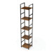 Regál s pěti policemi nabízí praktický odkládací prostor v industriálním stylu. Police jsou vyrobeny z MDF desek s dekorem starého dřeva v hnědém odstínu, které doplňuje černý lakovaný kovový rám zajišťující stabilitu a pevnost. Otevřená konstrukce umožňuje snadný přístup a přehledné uspořádání předmětů. Díky kombinaci materiálů je regál navržen pro dlouhou životnost a snadnou údržbu. Je vhodný do obývacích pokojů, pracovních koutů i kanceláří, kde vynikne jako funkční i designový prvek.