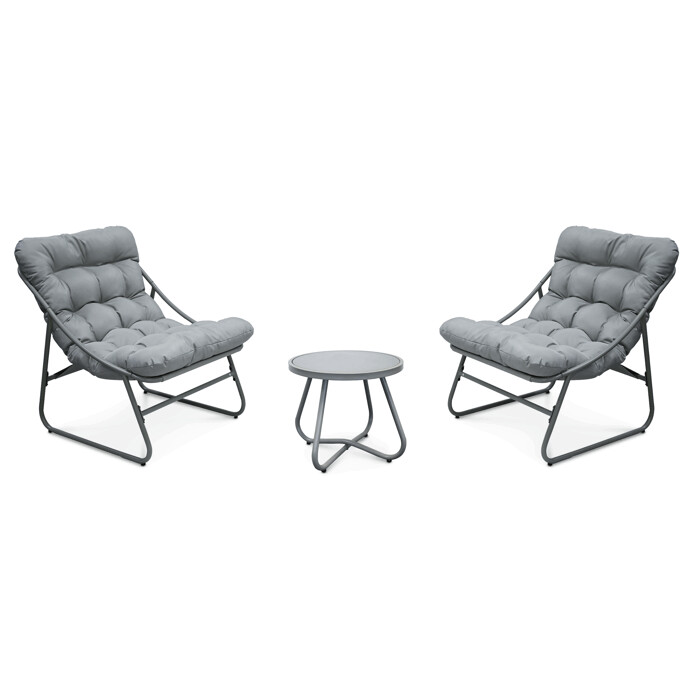 Zahradní set 1+2 v šedém provedení značky Autronic nabízí praktické a pohodlné řešení pro venkovní posezení. Skládá se ze dvou křesel s pevnou kovovou konstrukcí a měkkým polstrováním potaženým látkou, která zajišťuje komfort i při delším sezení. Stolová deska je vyrobena z tvrzeného skla, které je odolné vůči povětrnostním vlivům a snadno se udržuje. Nadčasový design s čistými liniemi a stabilní kovová podnož přispívají k dlouhé životnosti a estetickému vzhledu setu. Rozměry a nosnost jsou přizpůsobeny pro běžné venkovní použití, což zajišťuje funkčnost i komfort v zahradním prostředí.
