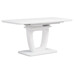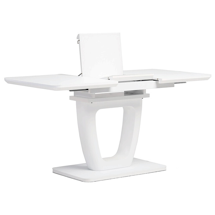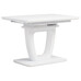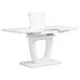 Designový jídelní rozkládací stůl o rozměru 110 + 40 x 75 cm. Vrchní stolová deska je tvrzeného skla tl. 4 mm v bílé barvě. Díl rozkladu je také krytý bílým sklem jako celá stolová deska, což nepatří ke standardům a řadí stůl do vyšší kategorie. Podkladová deska, centrální noha je z MDF je čistě bílá v matném provedení. Podesta je z také z MDF a krytá sklem v barvě. Ze spodní části opatřená plastovými kluzáky, eleminujícími poškození povrchů tvrdých podlah. Mechanické součásti jsou kovové. Stůl jistě zaujme svým nadčasovým designem i skvěloým zpracováním detailu a v neposlední řadě i barvou a stane se elegantním prvkem v moderních i klasicky laděných jídelnách, kuchyních a obývacích prostorách. Výška stolu je 76 cm. Ke stolu je možné umístit až 6 židlí.